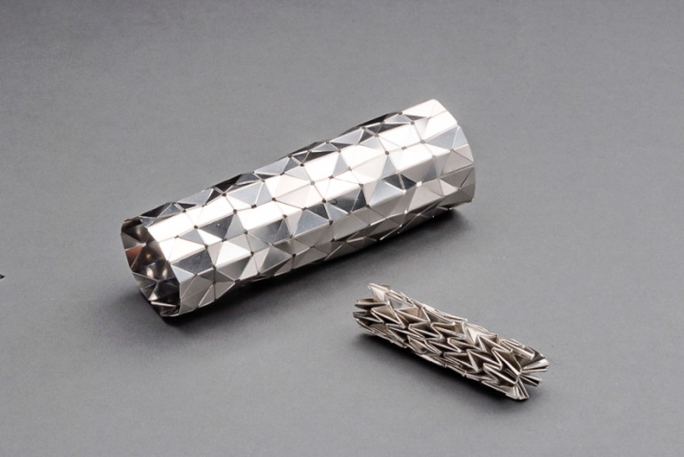 In space engineering, the problem is getting something big into orbit; in medicine, it turned out to be useful to get something small into the body. There is a procedure called stenting (hopefully you will never need it in real life), whose essence is introducing a so-called stent – a hollow tube that artificially expands a narrowed section of an organ (for example, an artery, the esophagus, and others). For such a procedure it is desirable for the stent to occupy as little volume as possible during delivery, and then expand to its working size once placed.