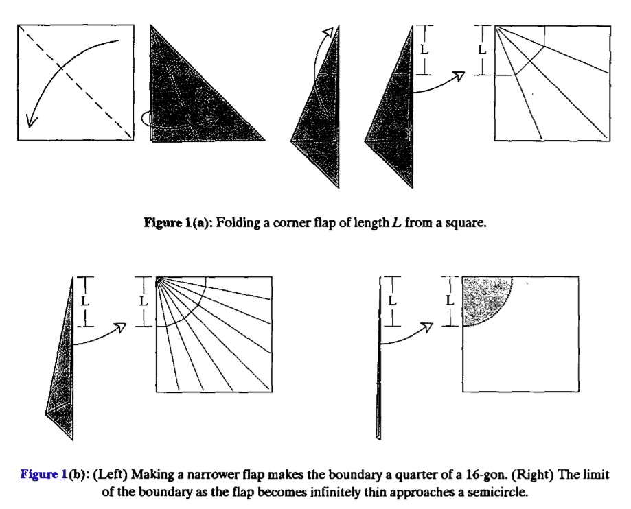 Studying the correspondence between crease patterns and stick figures, he arrived at the idea that each segment (each “stick”) corresponds to a circle (or part of a circle) in the crease pattern.
